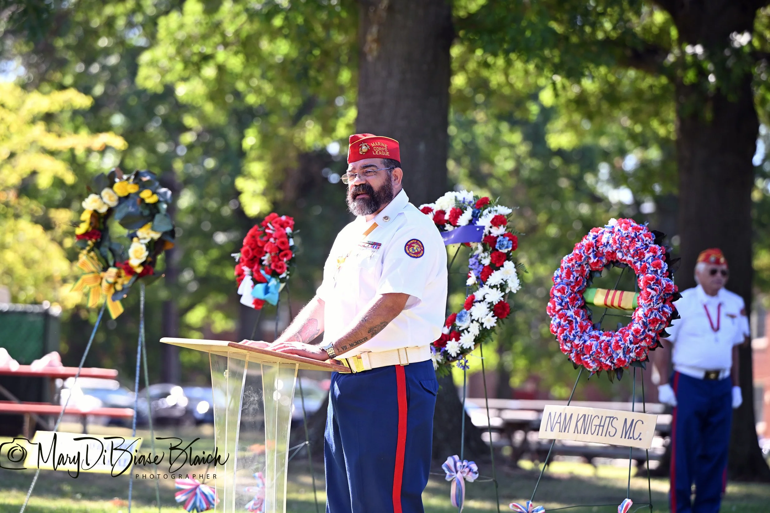 Upon completion of the Mass, a brief ceremony was held on the lawn adjacent to the chapel in front of the statue of Fr Capodanno. Wreaths were presented by veterans groups, and several Knights of Columbus Councils from the Island. Fr Capodanno’s Medal of Honor citation was read, and the Marine Corps League shot a 21 gun salute.