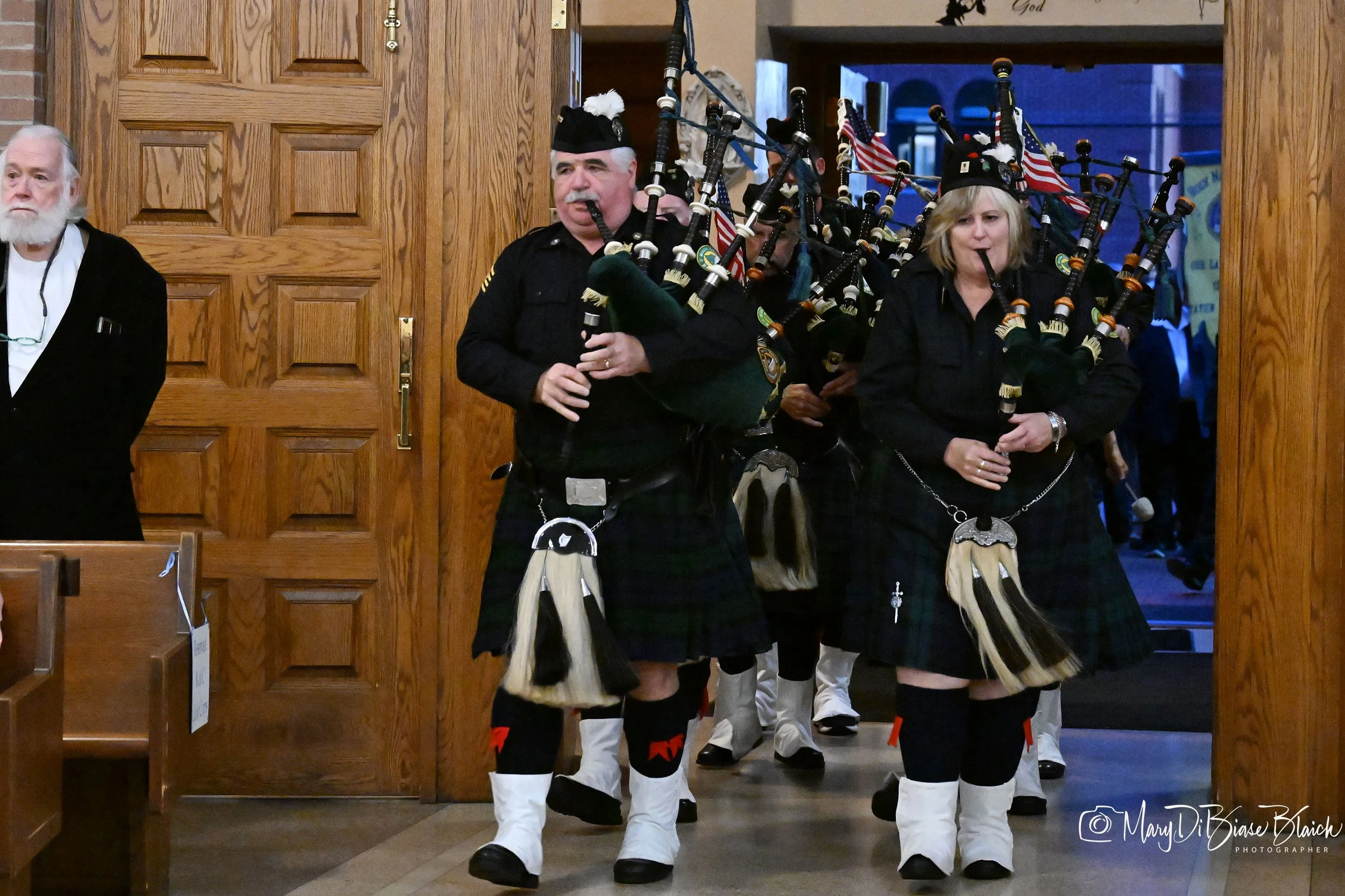 The University of Notre Dame Club of Staten Island held their annual Eve of Remembrance to honor the Staten Islanders who died on September 11, 2001 and those who have since died of 9/11 related diseases. The evening began with the Staten Island Pipes and Drums leading a procession of clergy, Knights of Columbus, military members and students who participated in the service.